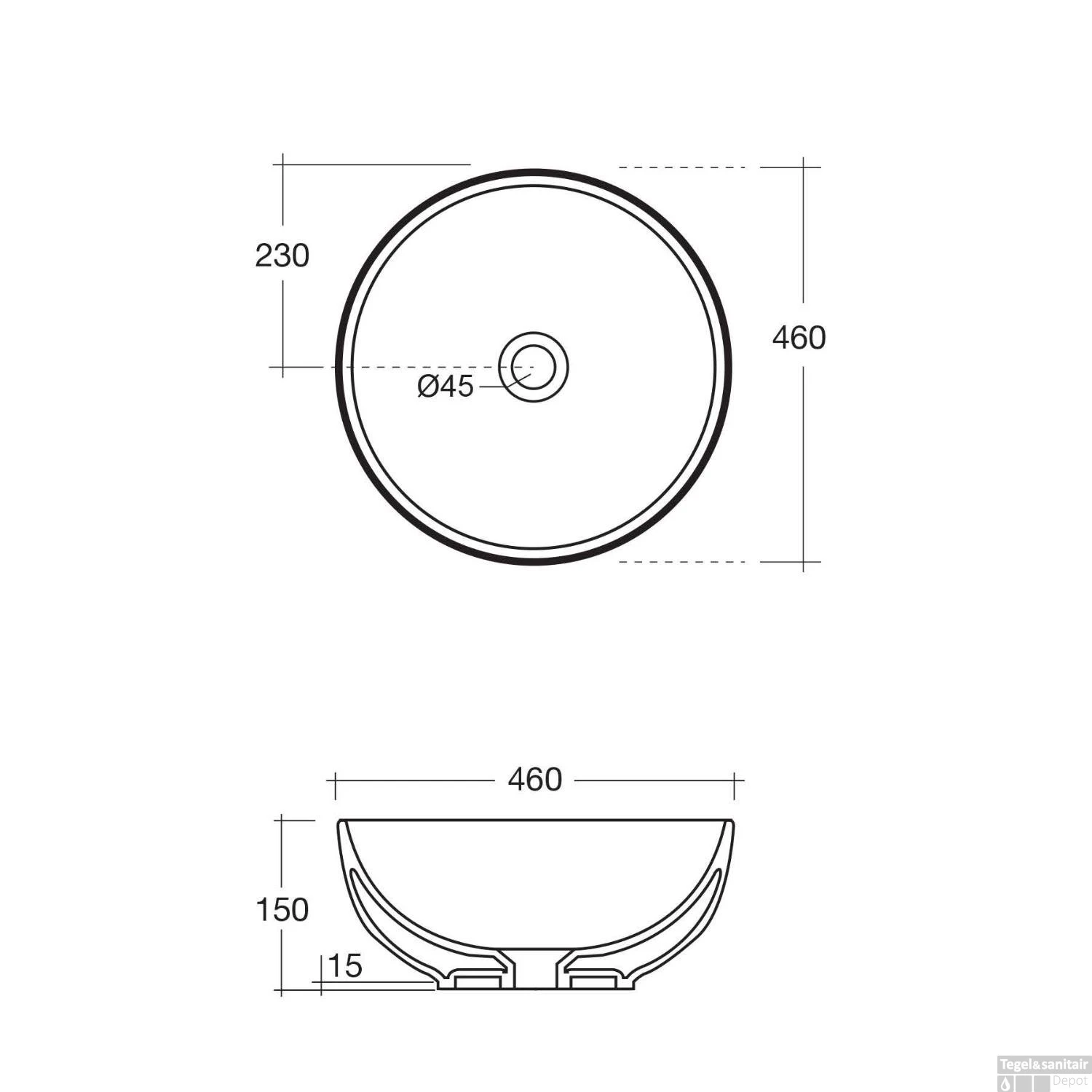 Specificaties Waskom Rond 46x46x15 Keramiek Wit Sapho Dimp: