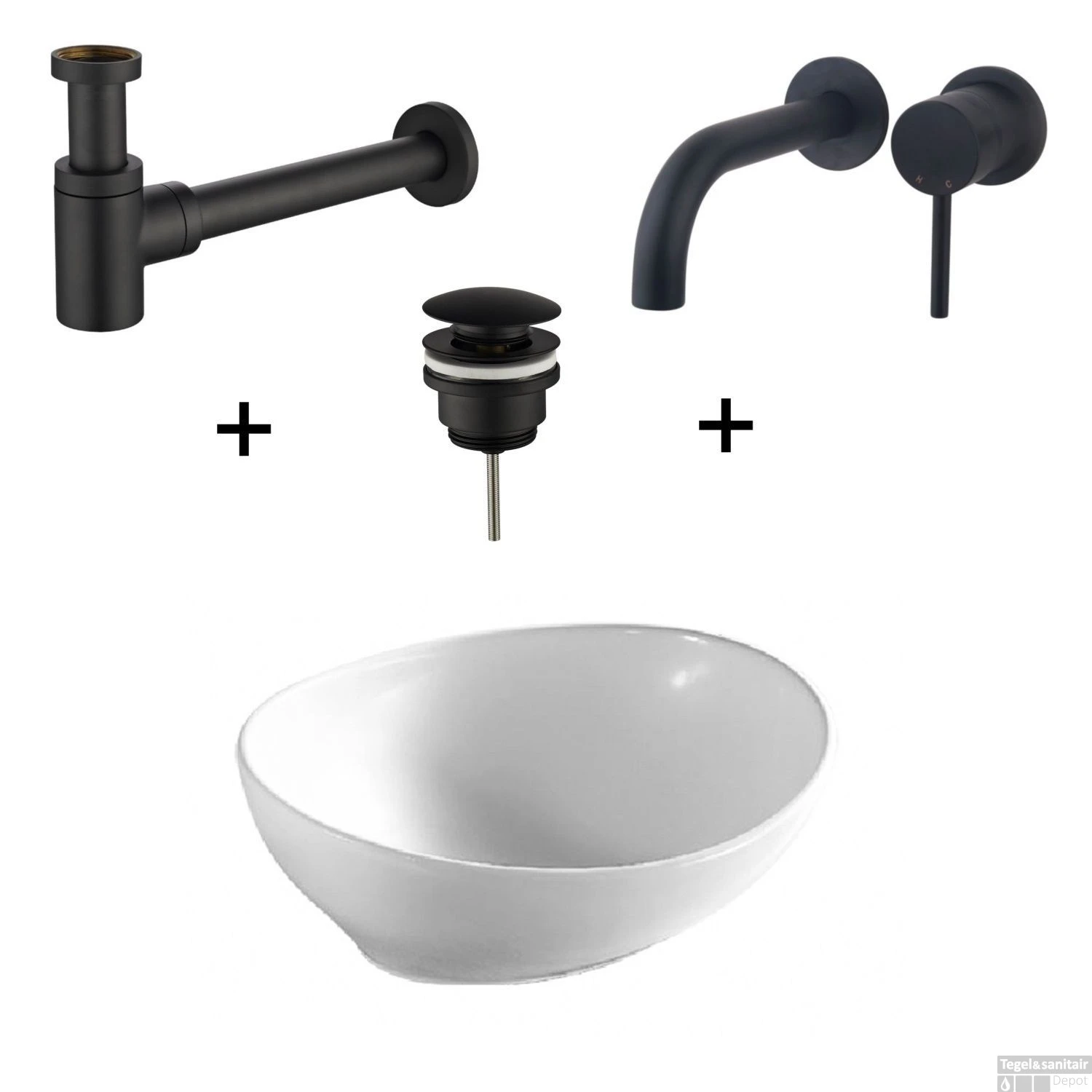 Waskomset Barco Incl Mat Zwarte Inbouwkraan Afvoer en Waste
