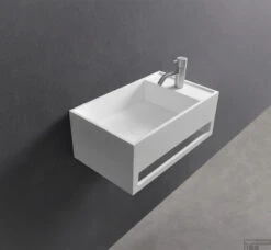 Deze wastafel is geproduceerd in de kleur mat wit en heeft een rechthoekige vorm. De hoogte van deze wastafel bedraagt 20 cm, de diepte 30 cm en de breedte 50 cm. De wastafel beschikt over een kraangat en een praktische handdoekhouder aan de voorzijde. Dit artikel wordt bovendien geleverd met bevestigingsset. Het matte, fluweelachtige oppervlak van dit artikel voelt prettig aan en is makkelijk schoon te maken en te onderhouden.