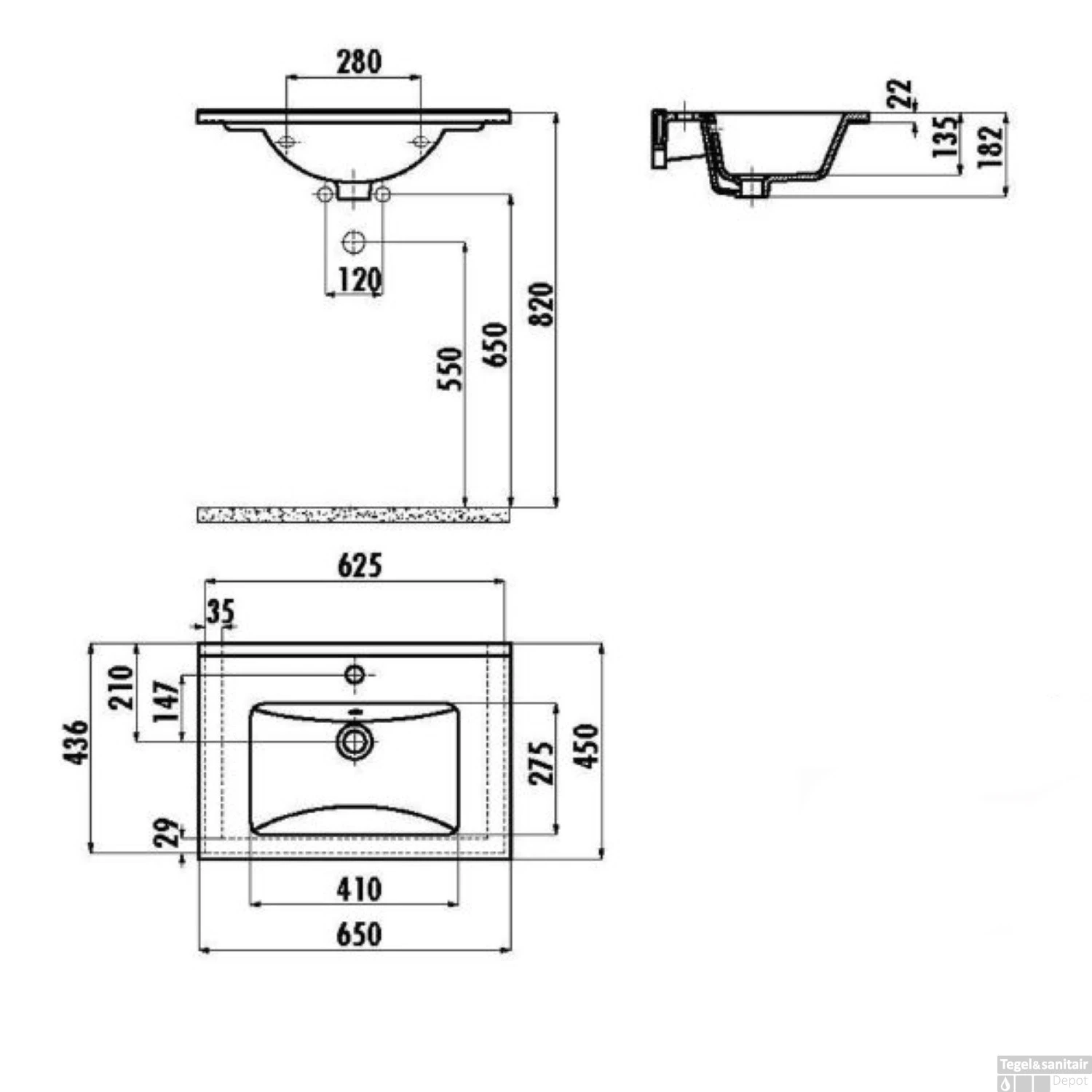 Dit product betreft alleen de wastafel en wordt geleverd zonder kraan of badmeubel.