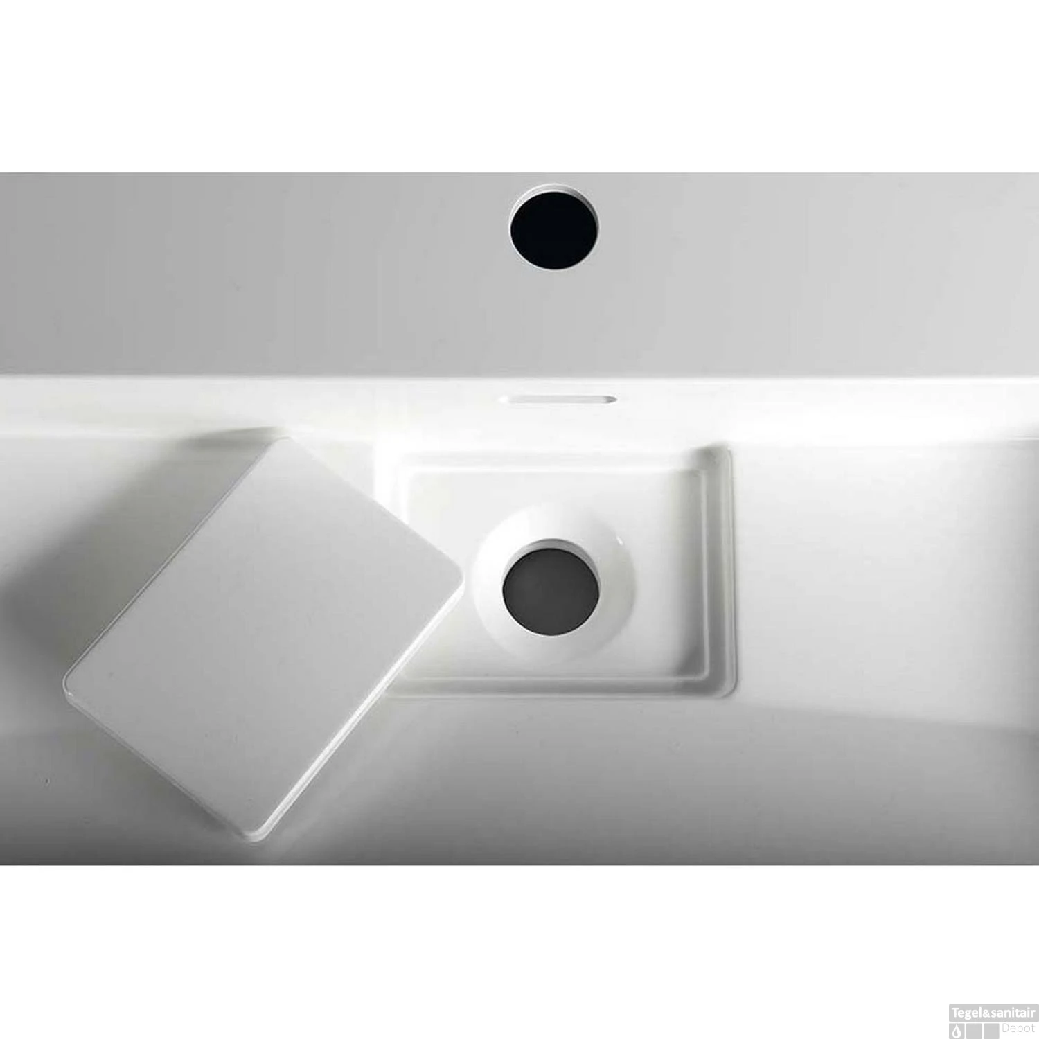 De wastafel beschikt over een kraangat in het midden en een overloop. Het product heeft een breedte van 90 cm, een diepte van 46 cm en een hoogte van 12.5 cm. U kunt ervoor kiezen om de wastafel te monteren aan een wastafelblad / meubel of hangend te bevestigen.