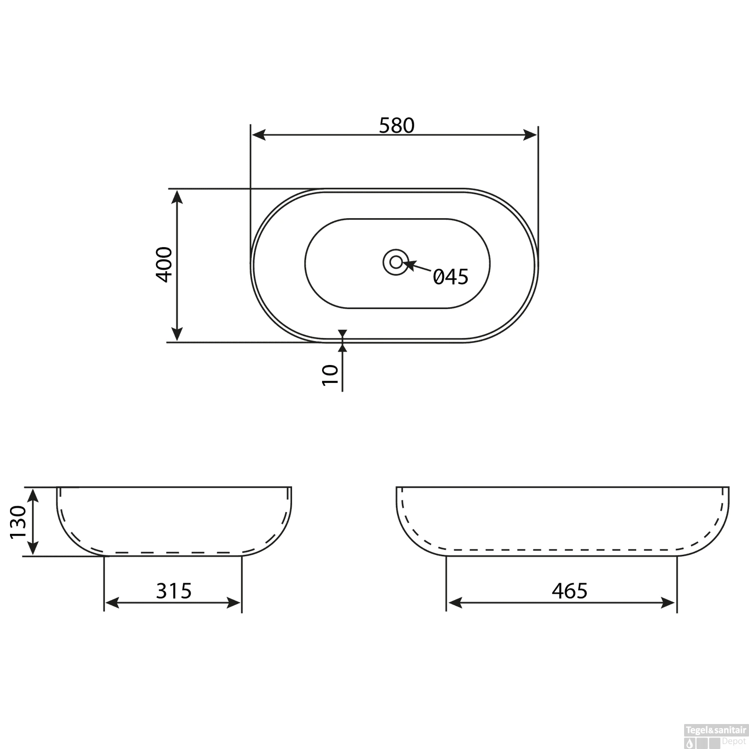 Specificaties Wastafel Sapho Priori 58×40 cm Zwart: