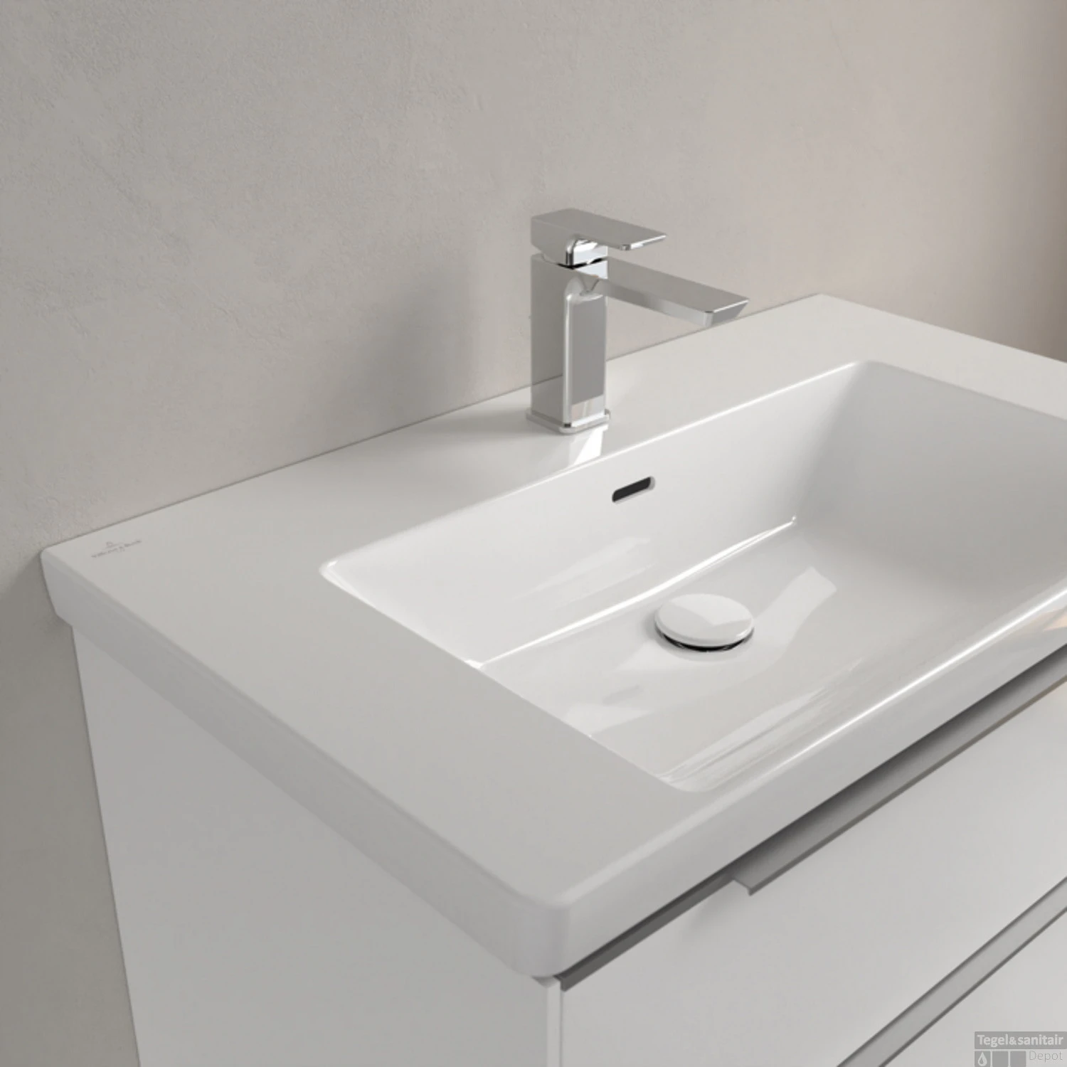 De wastafel is gemaakt van TitanCeram, een duurzaam en robuust materiaal dat wordt gemaakt door Villeroy & Boch zelf en zorgt voor extra sterkte bovenop de eigenschappen van sanitairkeramiek.