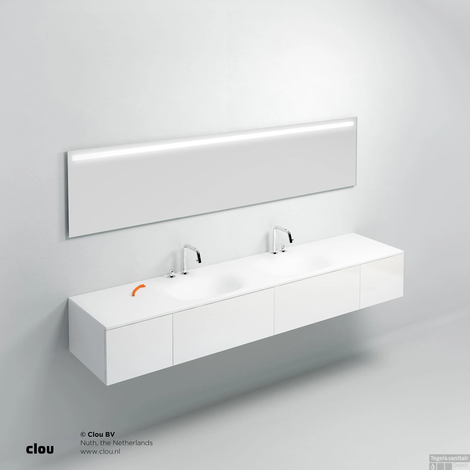Wastafelblad Clou Hammock Dubbele Waskom 220cm Mat Wit