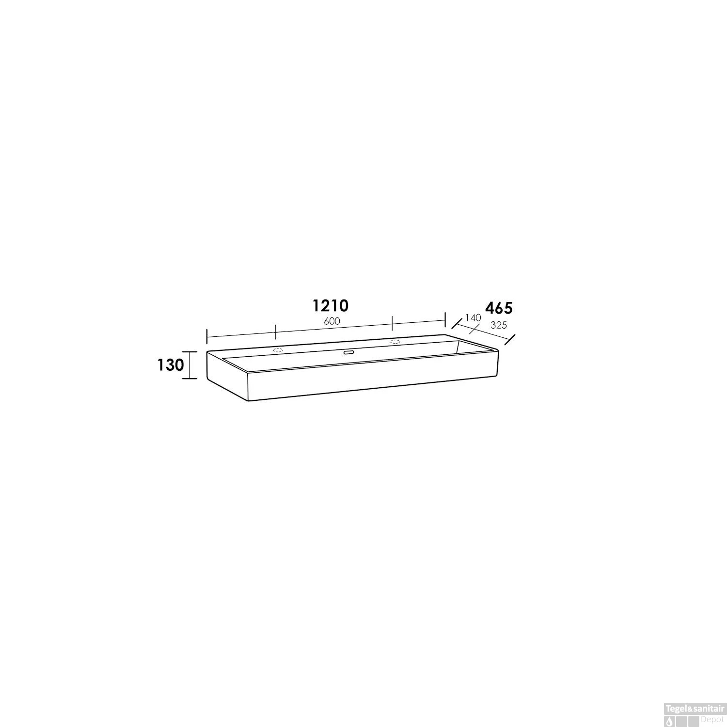 Het Legend wastafelblad is uitgevoerd in mat zwarte keramiek. De wastafel is 121 cm breed, heeft een rechthoekig wasbak met overloopgat en een kraangaten. Verder geven de 13 cm hoge rand en hoekige vormen de wastafel een moderne look.
