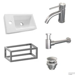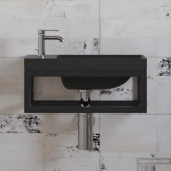 Fonteinset Differnz Bombai Natuursteen En Handoekrek 40x22x9 Cm Zwart Met Gebogen Kruis Kraan Chroom