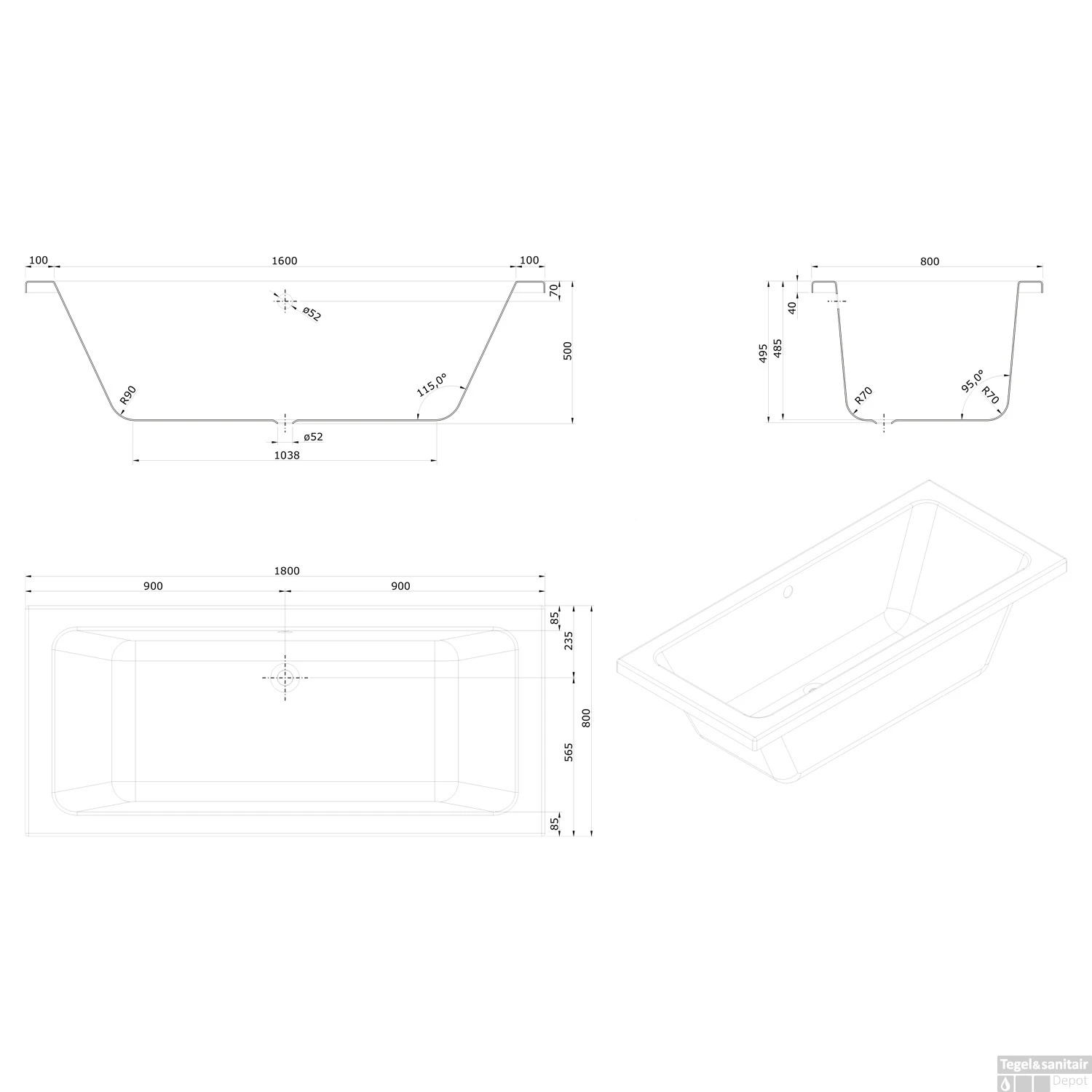 De afmetingen van dit bad zijn 180cm lang met een breedte van 80cm is er plaats genoeg om helemaal ontspannen in dit bad te liggen. De hoogte van het bad is maar liefst 50cm en de afvoer heeft een diameter van maar 5.2cm. De rand van het bad heeft een breedte van 8cm, hierop kunt u tijdens het ontspannen een lekker drankje plaatsen. Door het materiaal van het bad voelt deze niet zo koud aan als u er in gaat liggen. Ook blijft het water langer warm dan in een ander materiaal bad. Het bad is poriënvrij, hierdoor hecht er dus geen vuil aan en is hij ook nog eens makkelijk schoon te houden. Bij de whirlpool worden badpoten meegeleverd die u kunt verstellen in hoogte van 10cm tot 15cm. De inhoud van dit bad is 293 Liter. Het bad is voorzien van een droogloopbeveiliging, een automatische nablaas functie en kleurenverlichting.