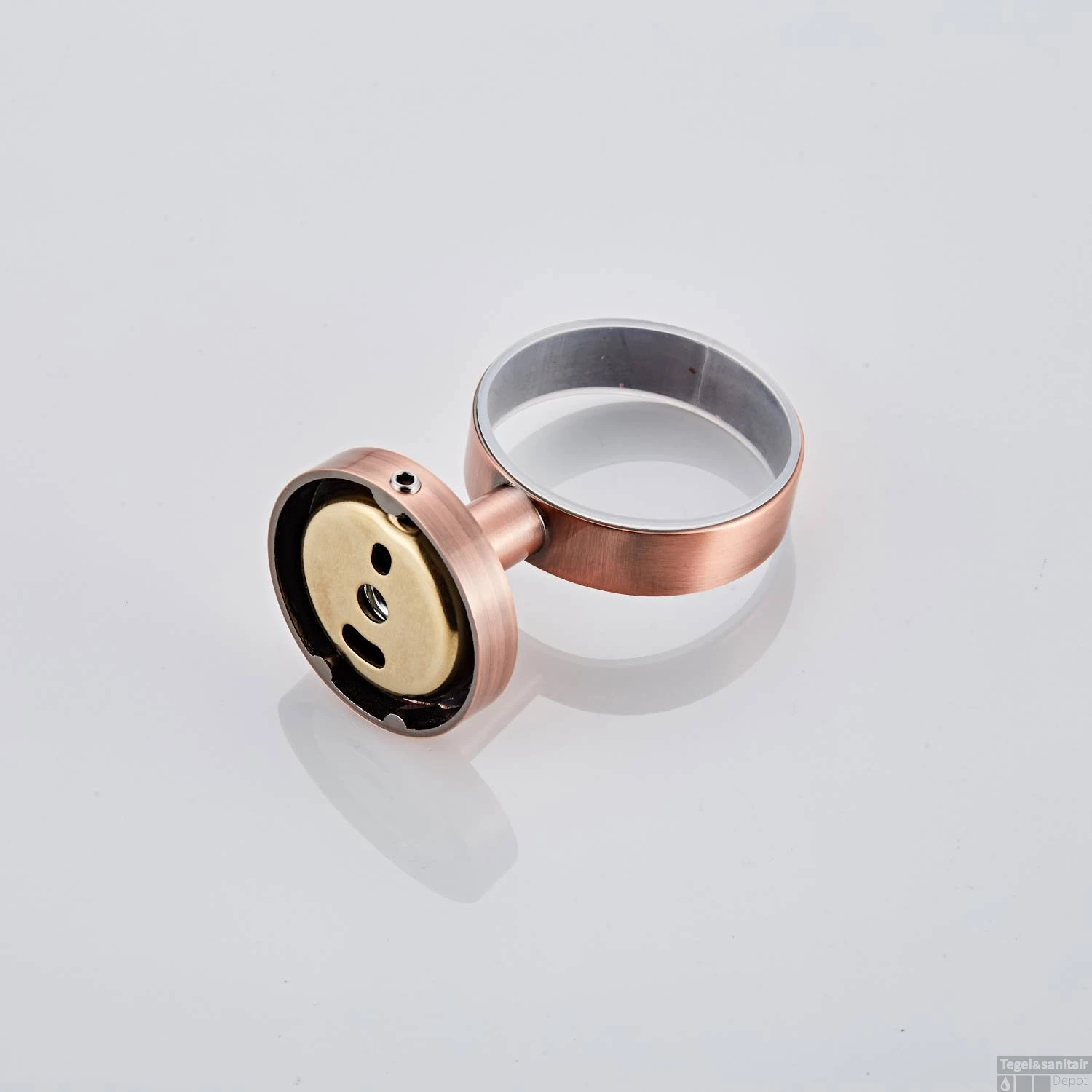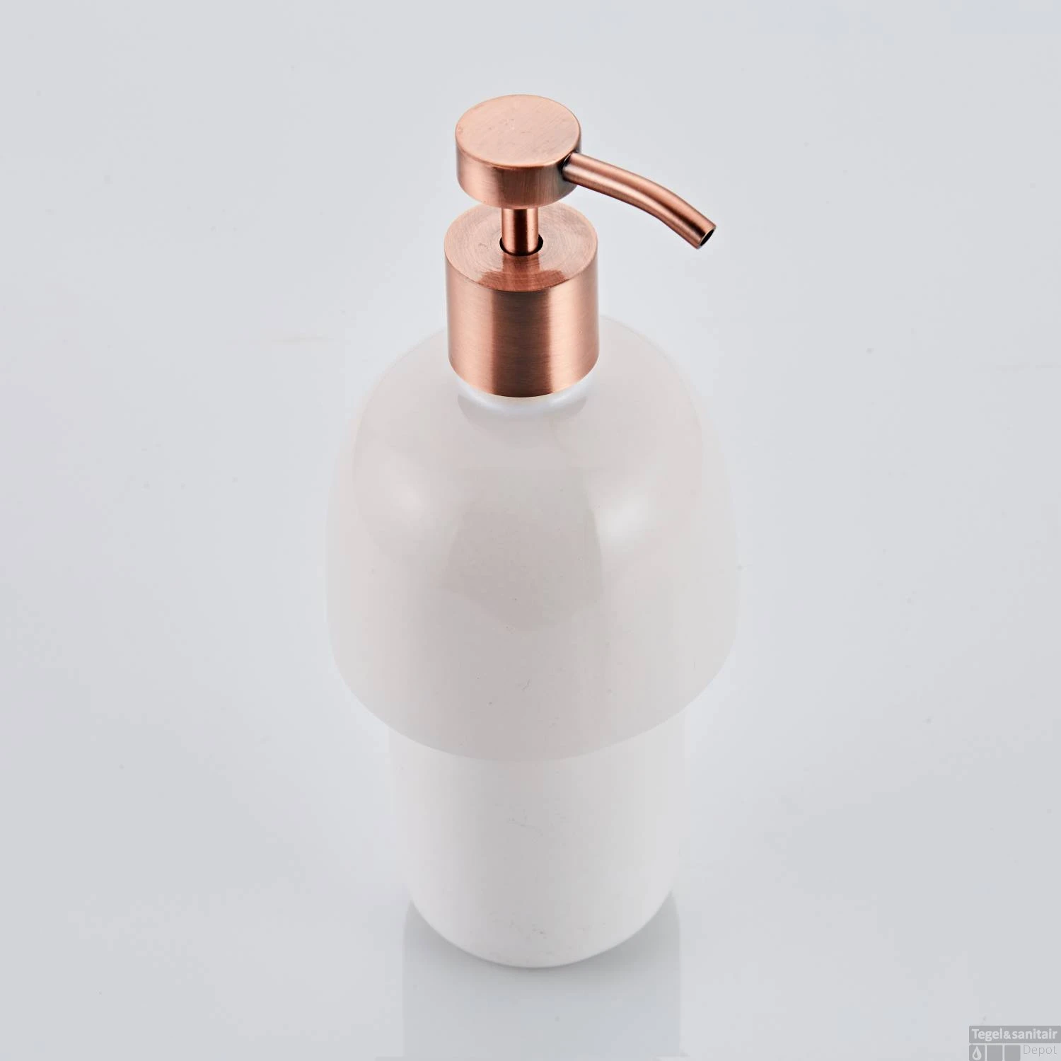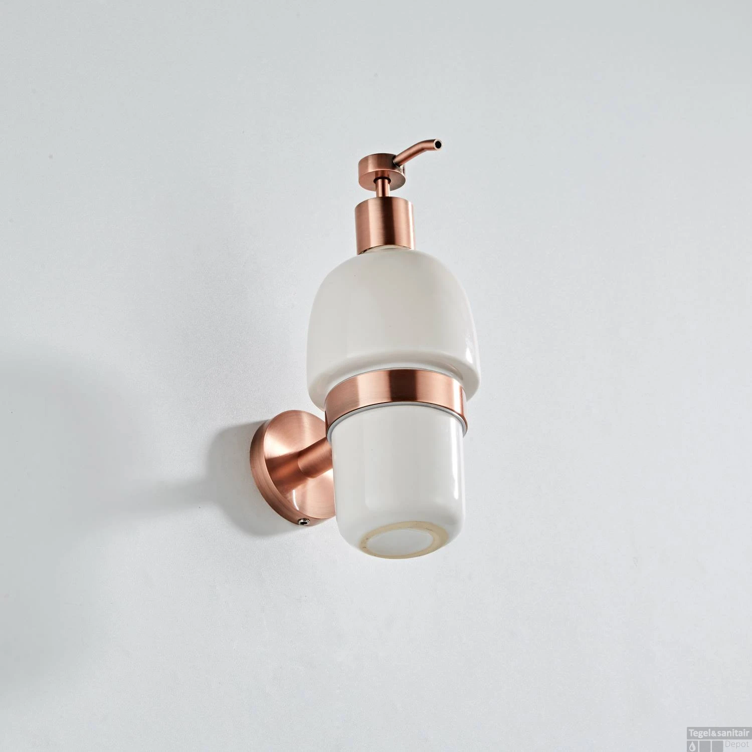 De zeepdispenser van de serie Copper heeft de afmetingen hoogte 19 cm, breedte 8 cm en een diepte van 7 ,5 cm. Het potje voor de zeep is gemaakt van keramiek en de overige onderdelen zijn gemaakt van messing. het zeepbakje kan eenvoudig uit de ring gehaald worden voor bijvoorbeeld het schoonmaken van het potje of om de zeep opnieuw de vullen. Ook heeft de serie meerdere accessoires zodat u uw badkamer kunt combineren met andere elementen uit de serie. Zo voorkomt u kleurverschil in uw accessoires.