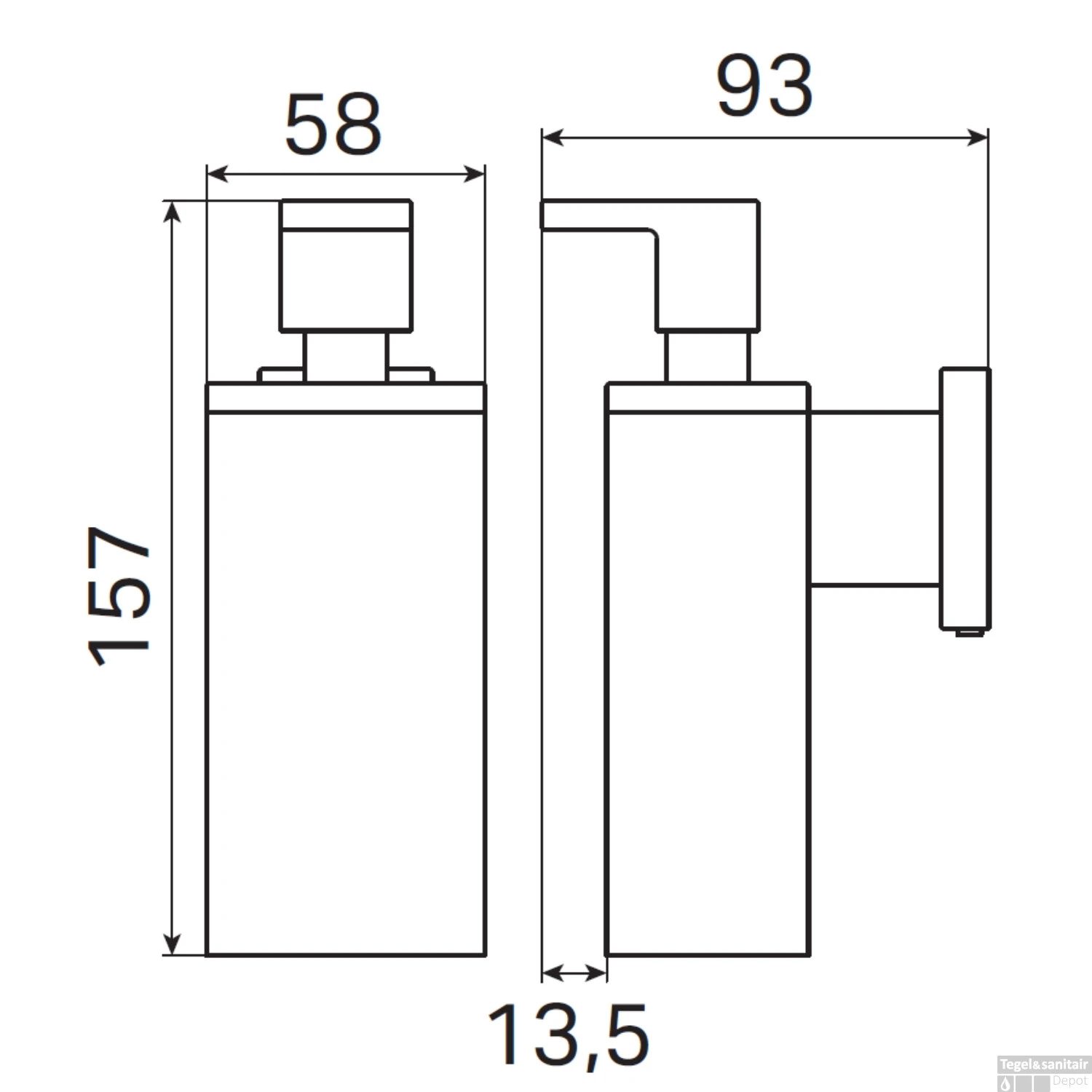 De hoogte van deze Zeepdispenser is 15,7 cm, de breedte is 5,8 cm en de diepte is 9,3 cm. Het uiteindelijke gewicht van deze zeepdispenser is 68,7 gram. De zeepdispenser is gemaakt van roestvrij staal, en dat alles met een Grafiet kleur.