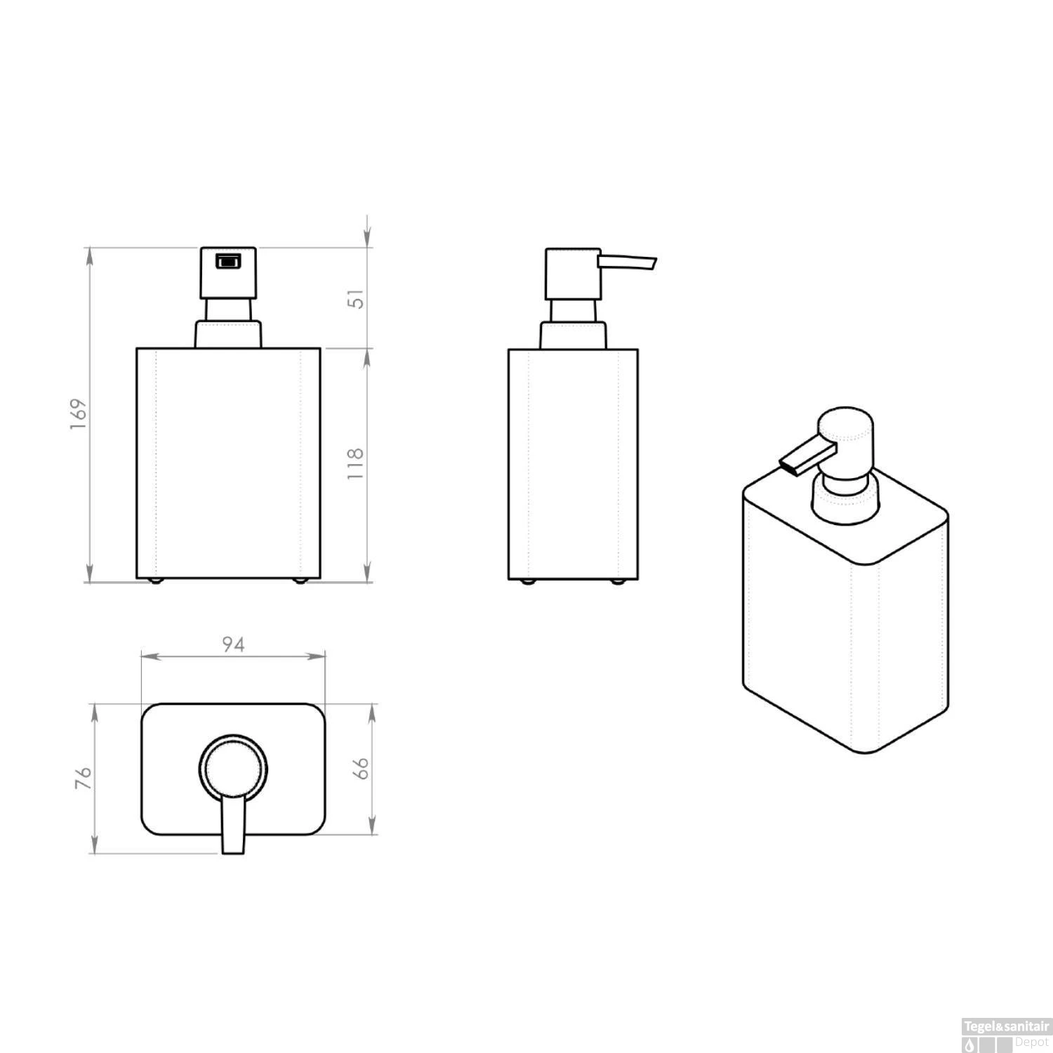 Specificaties Zeepdispenser Vrijstaand 350 ML Polyresin Grijs Sapho Aries: