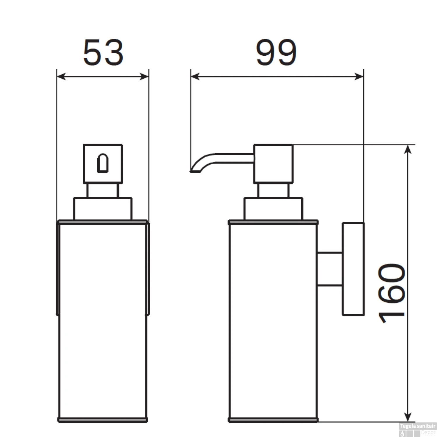 Een mooie vierkante zeepdispenser in de eigentijdse Mezzo-stijl. Makkelijk na te vullen met iedere vloeibare zeep.