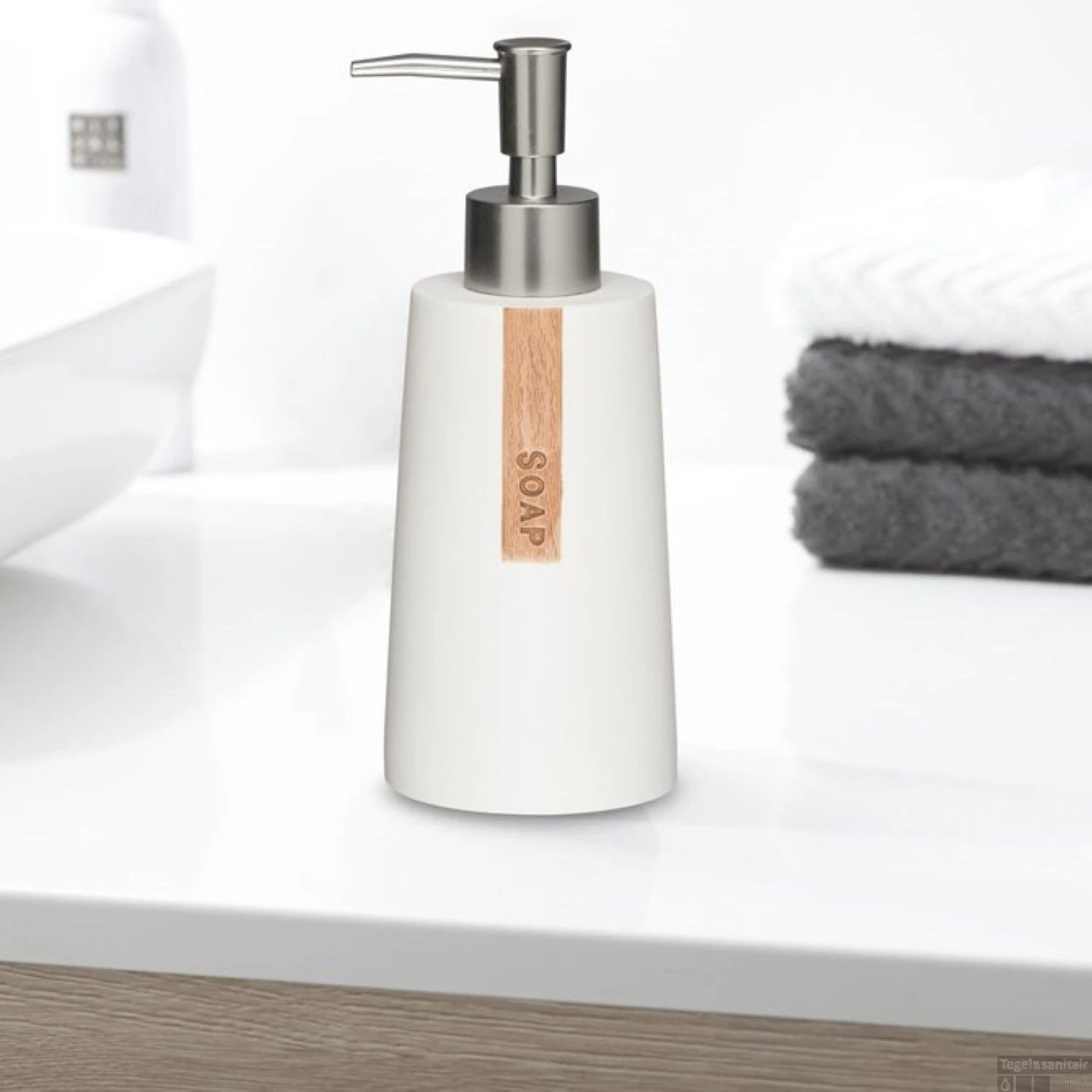 De Pierra zeepdispenser van Sealskin is gemaakt van polyresin, een sterke combinatie van natuursteen en kunsthars. Houtaccenten aan de zijkanten geven deze handgeschilderde zeepdispenser daarbij een chique uitstraling. Behalve mooi is deze zeepdispenser ook gewoon handig en hygiënisch.