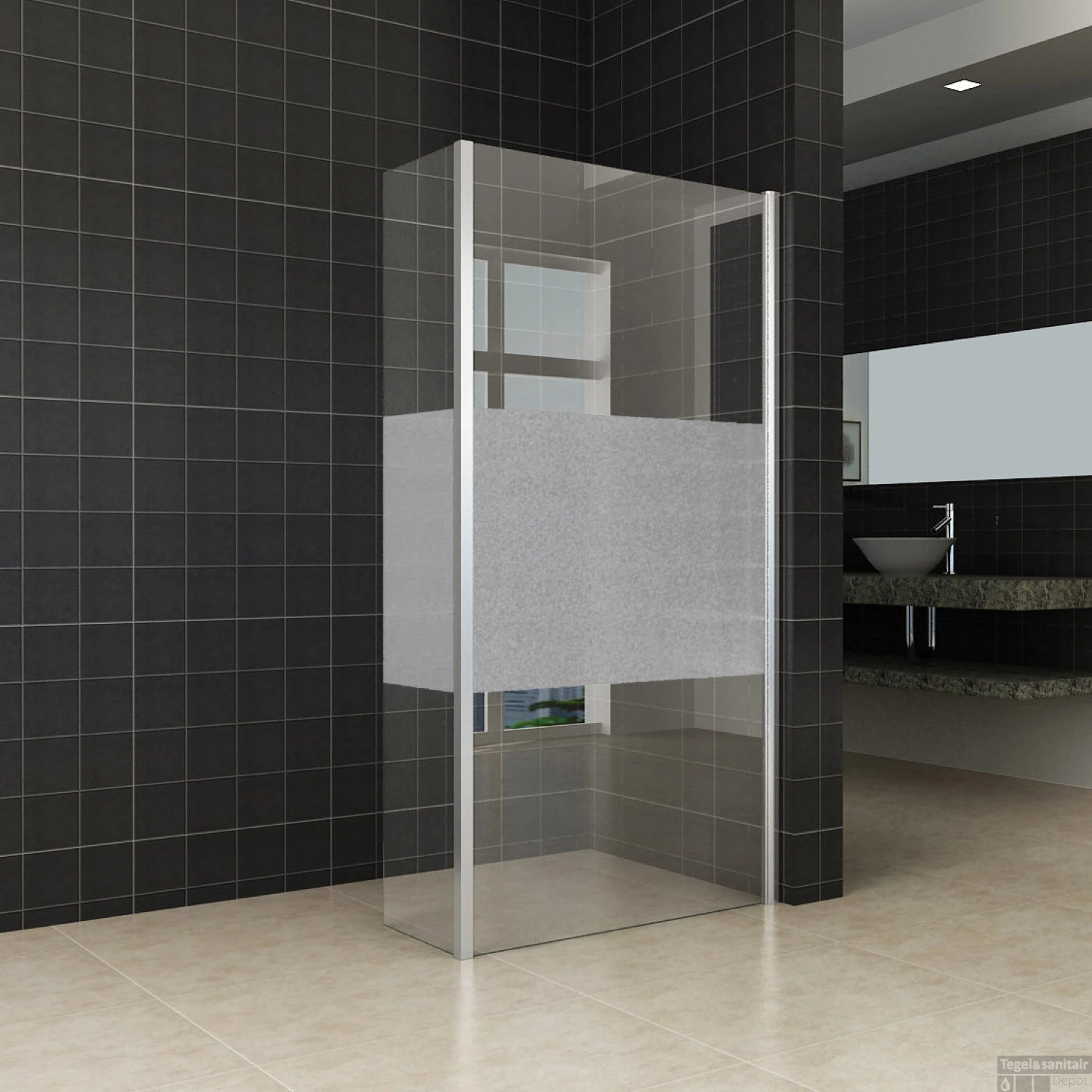 Zijwand Hoekprofiel Wiesbaden Met Middenband 40x200cm 10mm NANO