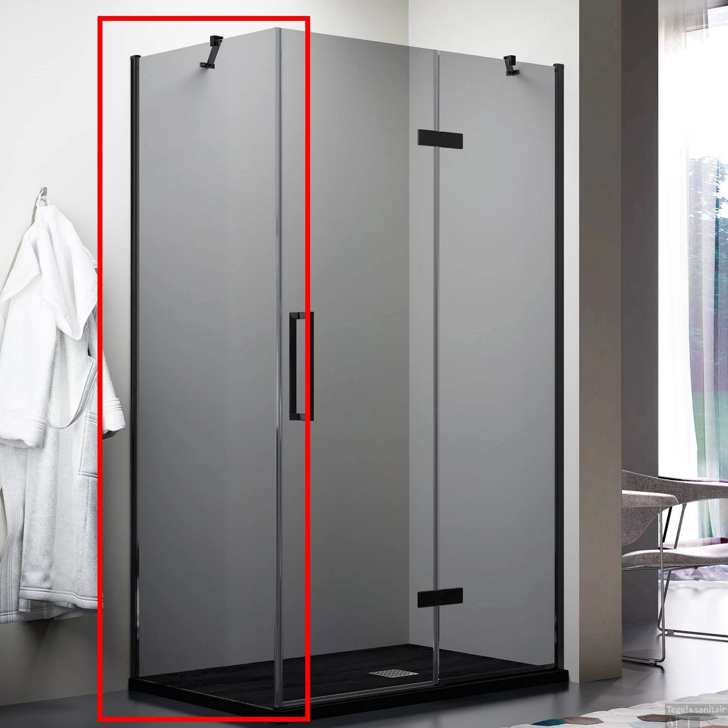 Zijwand TBV Cabine Lacus Elba 90×200 8mm Nano Rookglas Mat Zwart